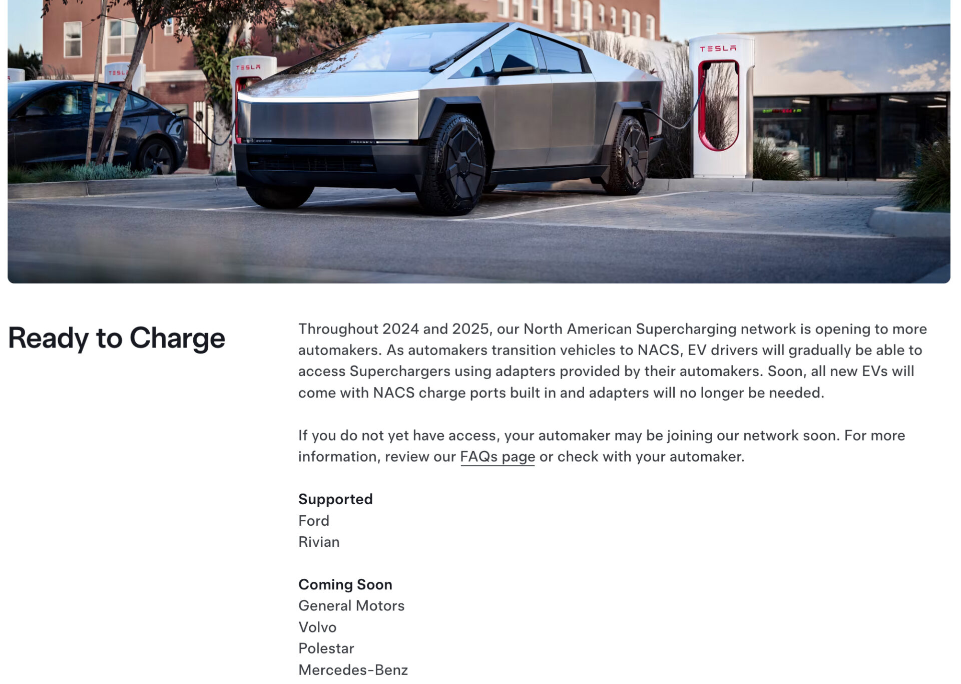 テスラは今年初めにリヴィアンとフォードの電気自動車にスーパーチャージャーネットワークを開放しましたが、いずれは他の電気自動車ブランドにも段階的にアクセスを拡大する予定です。テスラは以前、次に充電ネットワークへのアクセス権を得る自動車メーカーとしてゼネラルモーターズ(GM)、ポールスター、ボルボを挙げていましたが、今週同社のウェブサイトに掲載された情報によると、メルセデス・ベンツがその次のリストに加わりました。
