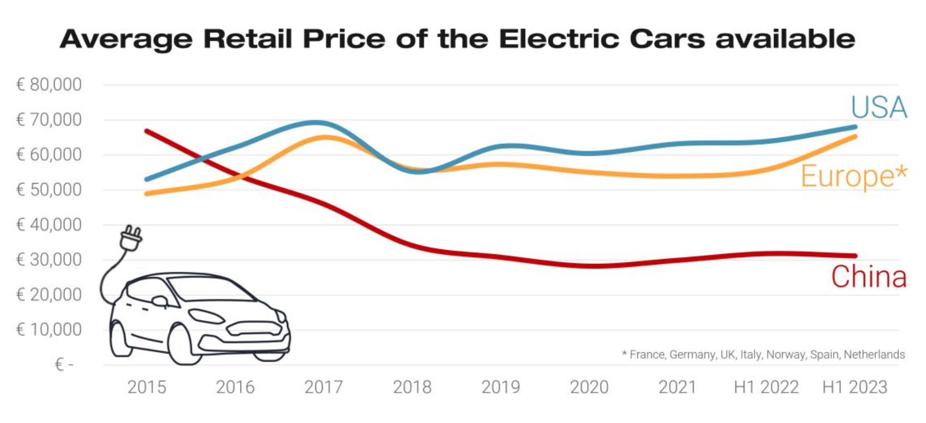 しかし、たとえEVがより手頃な価格になったとしても、欧州や米国では、平均して中国市場よりも高価です。