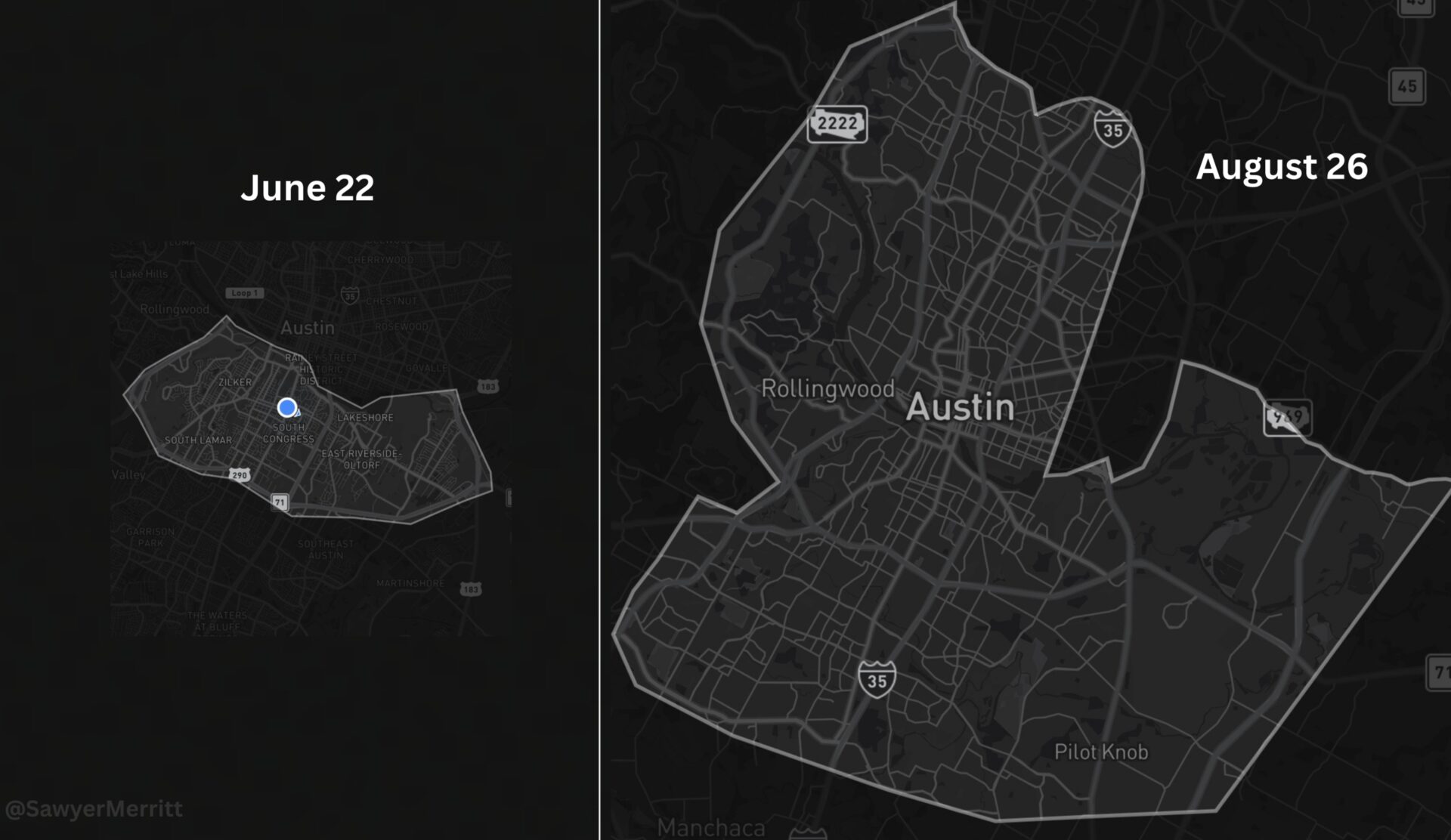 今回の更新により、テスラはオースティンにおける自律走行配車サービスの最大エリアをウェイモから奪還し、首位に返り咲きました。