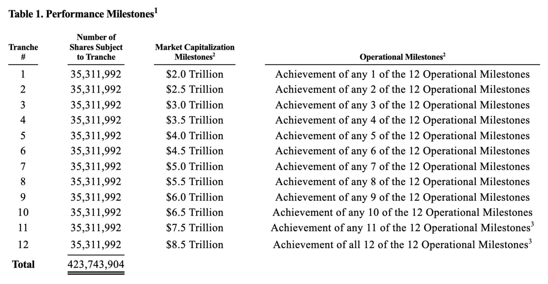 ニューヨーク・タイムズ紙によると、金曜日に提出された証券報告書に記載された「2025年CEO業績賞」は、自動車メーカーが一連の積極的な業績目標と評価目標を達成した場合、テスラ株(NASDAQ:TSLA)で最大9000億ドル相当の価値を持つことになります。