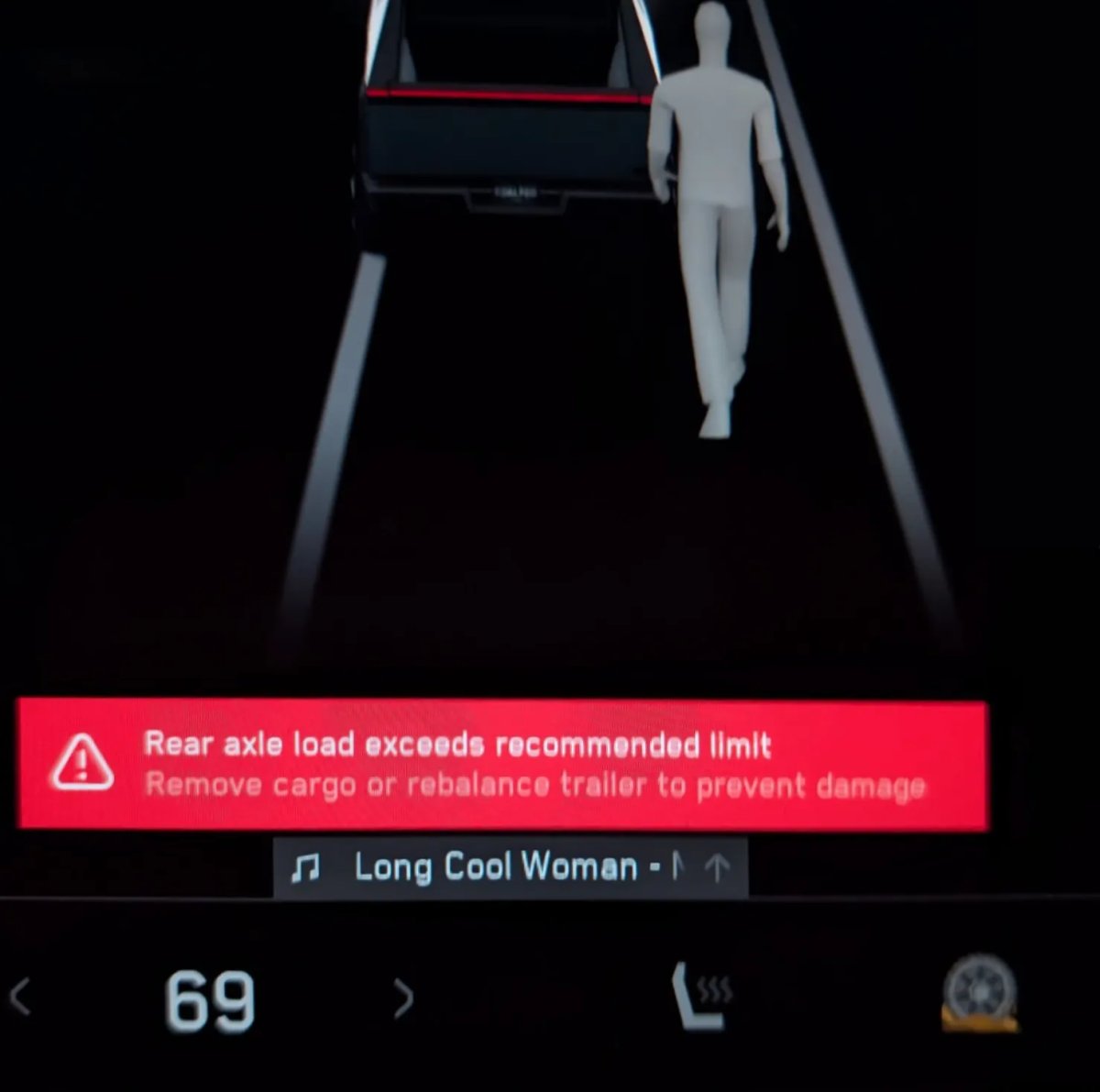 最新のソフトウェアアップデート2025.26において、テスラはサイバートラックの実用性を高めるもう一つのドキュメント化されていない機能を追加しました。重い物を牽引する際には、トレーラーのバランスを保ち、車の重量制限内であることを確認する必要があります。今回、サイバートラックは車の積載量制限を超過している場合に検知し、警告を発するようになりました。