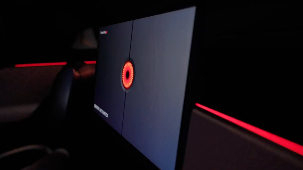 アクセント照明を備えた車の場合、セントリーモードが脅威を検知しイベントを記録すると、車を囲むストリップが赤く穏やかに点滅します