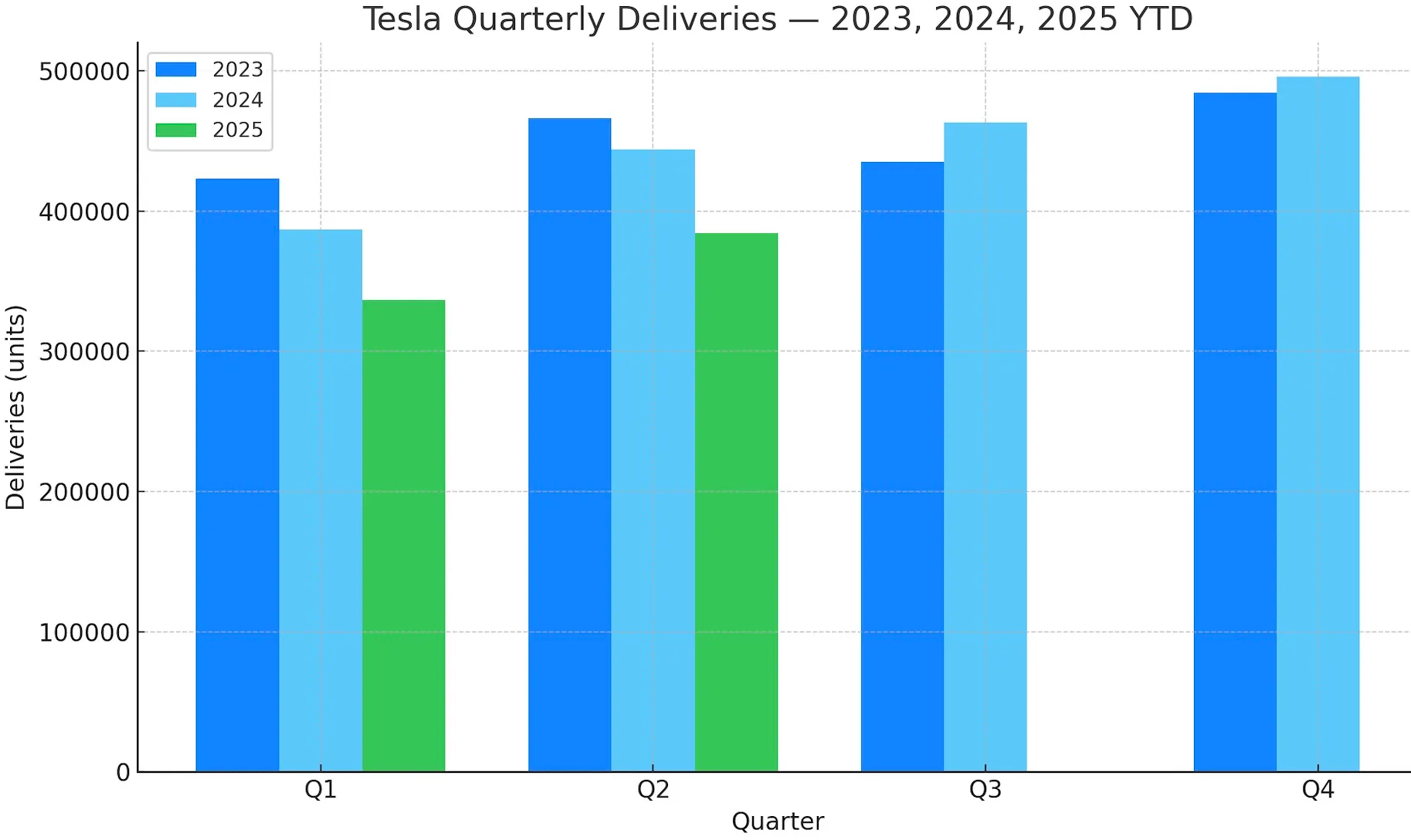 つまり、テスラは第 3 四半期は前年比で若干の増収が見込まれますが、第 4 四半期は大幅な減収、2025 年は全体として減収となる見通しです。この傾向は 2026 年まで続き、大きな変化がない限り 3 年連続の減収となるでしょう。