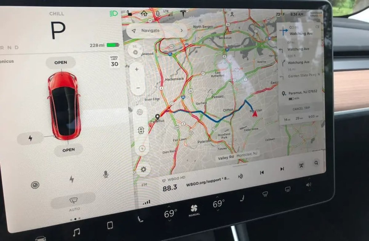テスラはさらに、ブラインドスポットカメラ警報機能を拡張し、後方横断車両警報を追加しました。多くの他車種では専用センサーを実装して使用するこの機能を、テスラはカメラのみで実現しました。