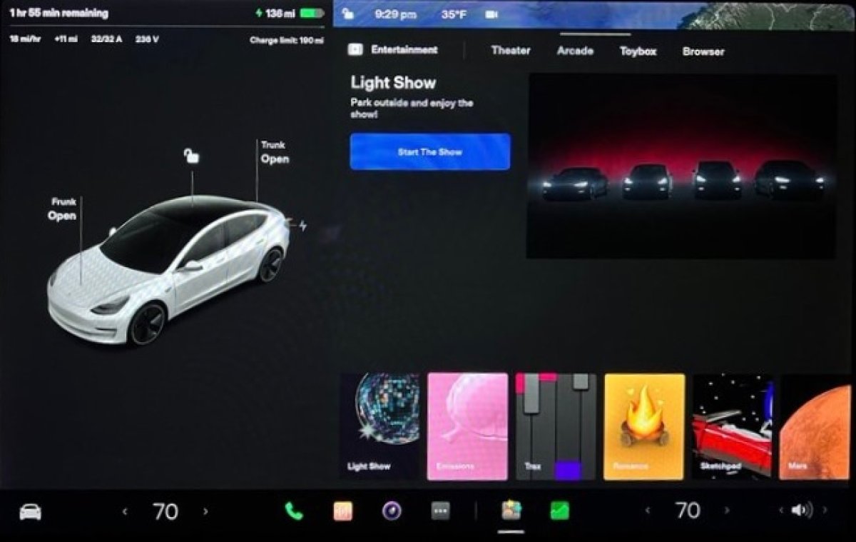 エンターテインメント面の機能拡充は前年ほどではありませんでしたが、テスラはビジュアライゼーションの向上、出発予約機能の強化、ブームボックス機能、排出ガス試験モードとテキストメッセージ機能の改良など、複数のユーザーインターフェイス改善を実施しました。