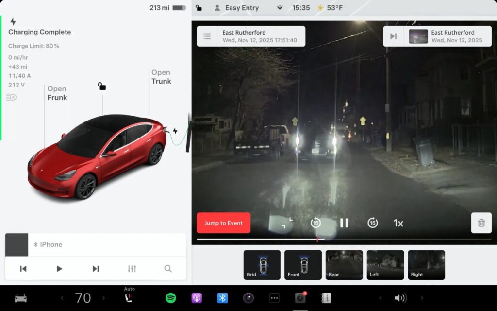ただし、これは単なるユーザーインターフェイスの改善にとどまりません。新機能も追加されています。スクラバーバーには「イベントへジャンプ」ボタンが追加され、ダッシュカムが動画を保存したトリガーイベント(セントリーイベントやクラクションなど)に即座に移動できます。また、画面上の専用ボタン実装で15秒単位の前後移動が可能となり、従来の手動マニュアルスクロール操作が不要になりました。