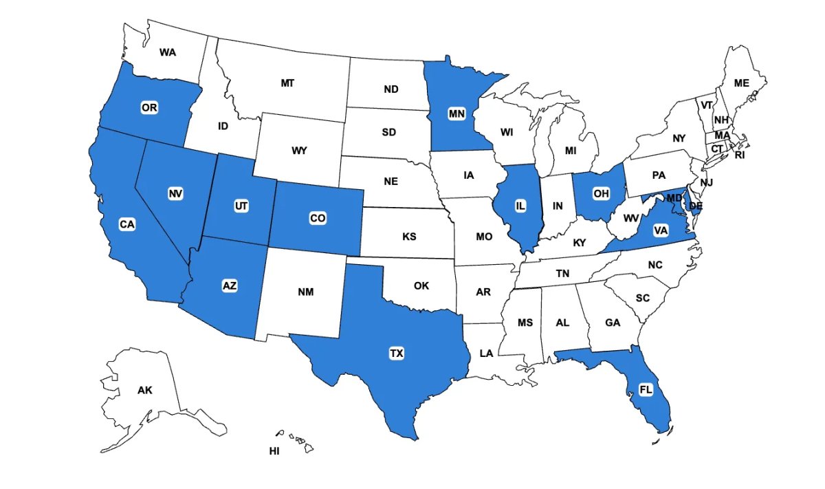 フロリダ州が加わったことで、対応州の全リストはアリゾナ州、カリフォルニア州、コロラド州、フロリダ州、イリノイ州、メリーランド州、ミネソタ州、ネバダ州、オハイオ州、オレゴン州、テキサス州、ユタ州、バージニア州となりました。これらの州の中で、カリフォルニア州のみが、保険料をドライバーのセーフティスコアに連動させていません。