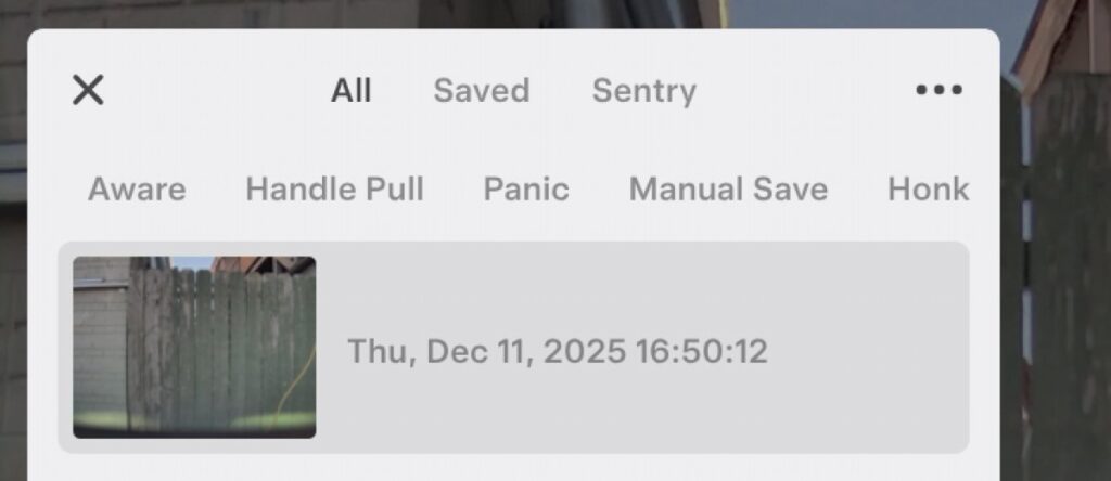 テスラはダッシュカムビューアーにさらなる改良を加えました。ダッシュカムビューアーに「ダッシュカム」タブと「セントリーモード」タブが追加されたことに加え、ダッシュカム動画の分類項目が拡充されました。