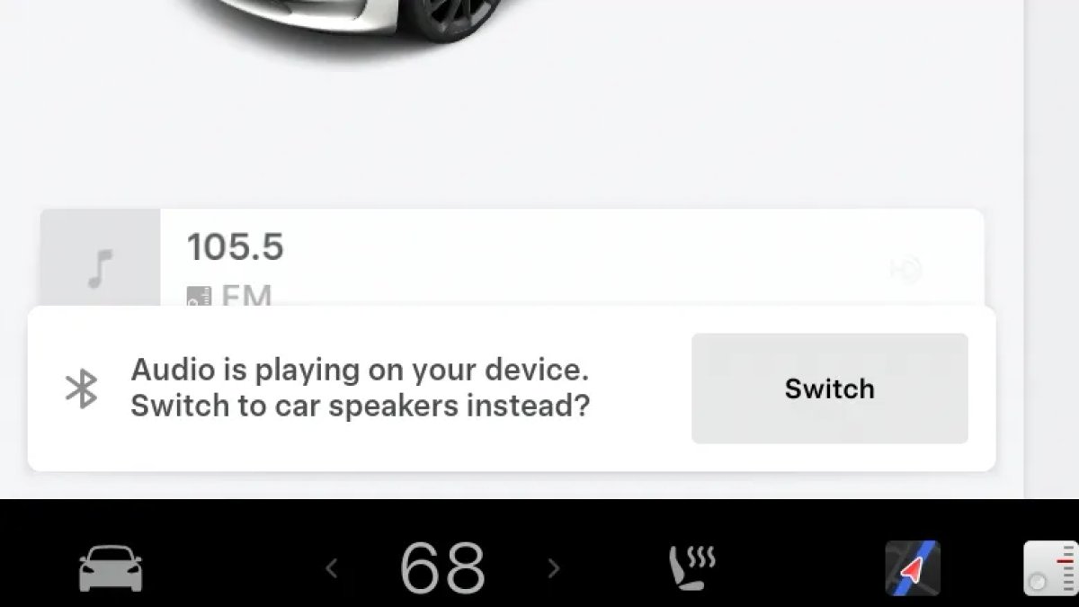お使いのスマートフォンがBluetoothで接続されており、車がスマートフォンでオーディオが再生されていることを検知した場合、Bluetoothオーディオソースに切り替えるよう促すようになりました。これにより、車のはスピーカーから音声が再生されます。